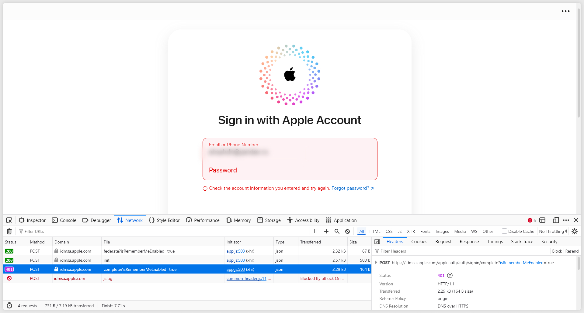 Nowadays, almost no one uses the standard 401 error screen in this scenario. Most websites will instead ask you to enter your username and password in a dedicated interface, and if you do not have an account, they will offer registration or suggest contacting the site team. You can still see the actual access error using developer tools — press F12 or Ctrl+Shift+I, go to the Network tab, and look for the relevant response codes.