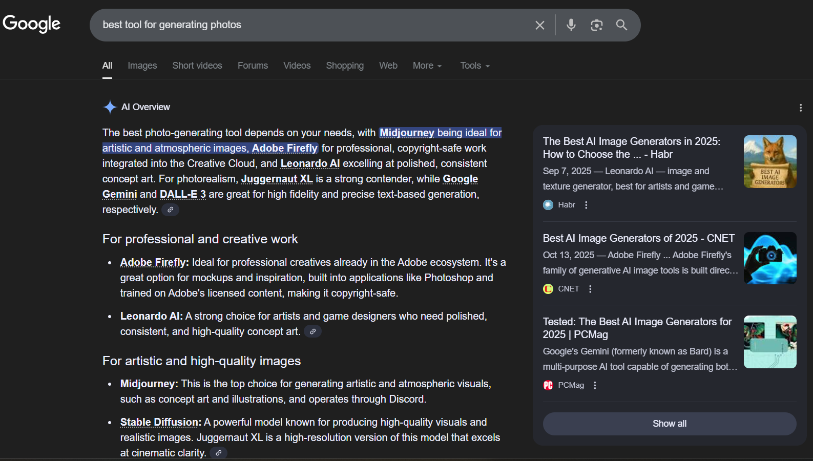 - Commercial. Queries such as "Best tool for generating photos" or "Product A vs. Product B" drive decision-making. Target pages, comparisons, and reviews will help attract your audience.