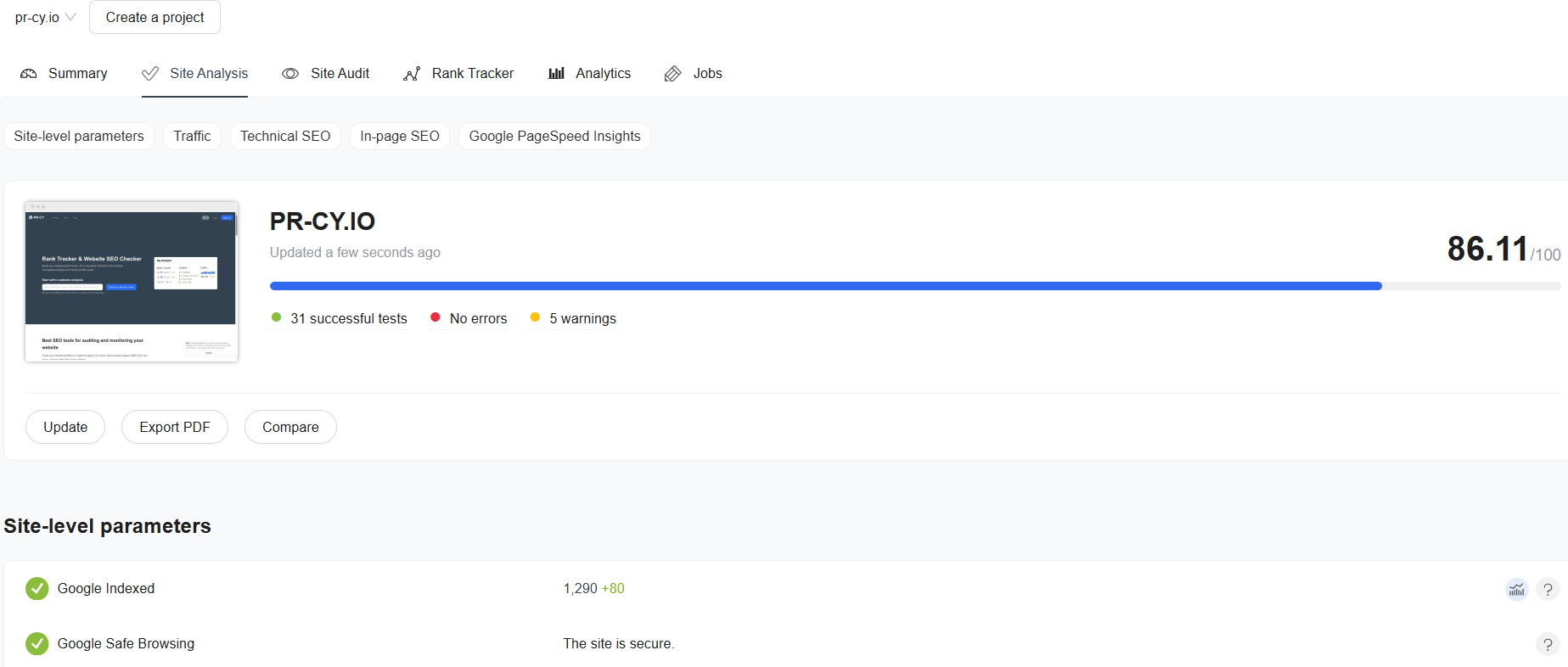 - Site Crawlability: Ensure that the website has a clean structure and no indexing issues.