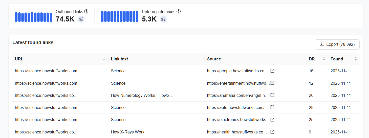 Backlink Checker can assist with link profile analysis. It will assess the quality of a domain's link profile, check the level of spam, and display the latest and most valuable links.