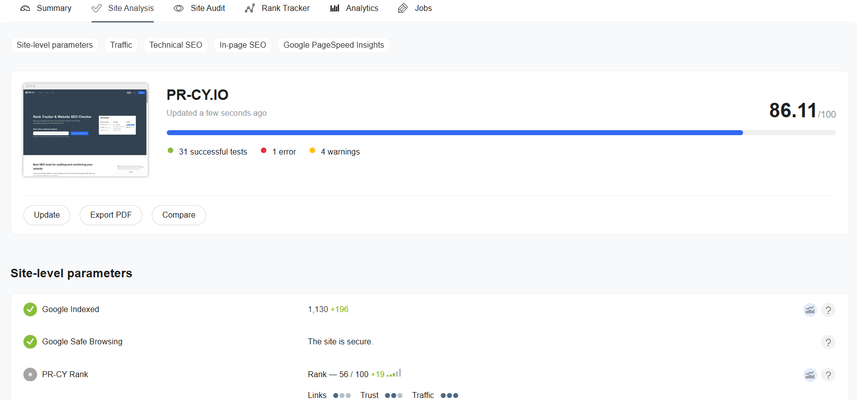 The PR-CY website analysis service offers a feature for daily checks. Simply enable it, and the service will monitor your site, sending notifications to your email if anything important occurs. This ensures that you won’t miss anything crucial and can correct errors promptly.